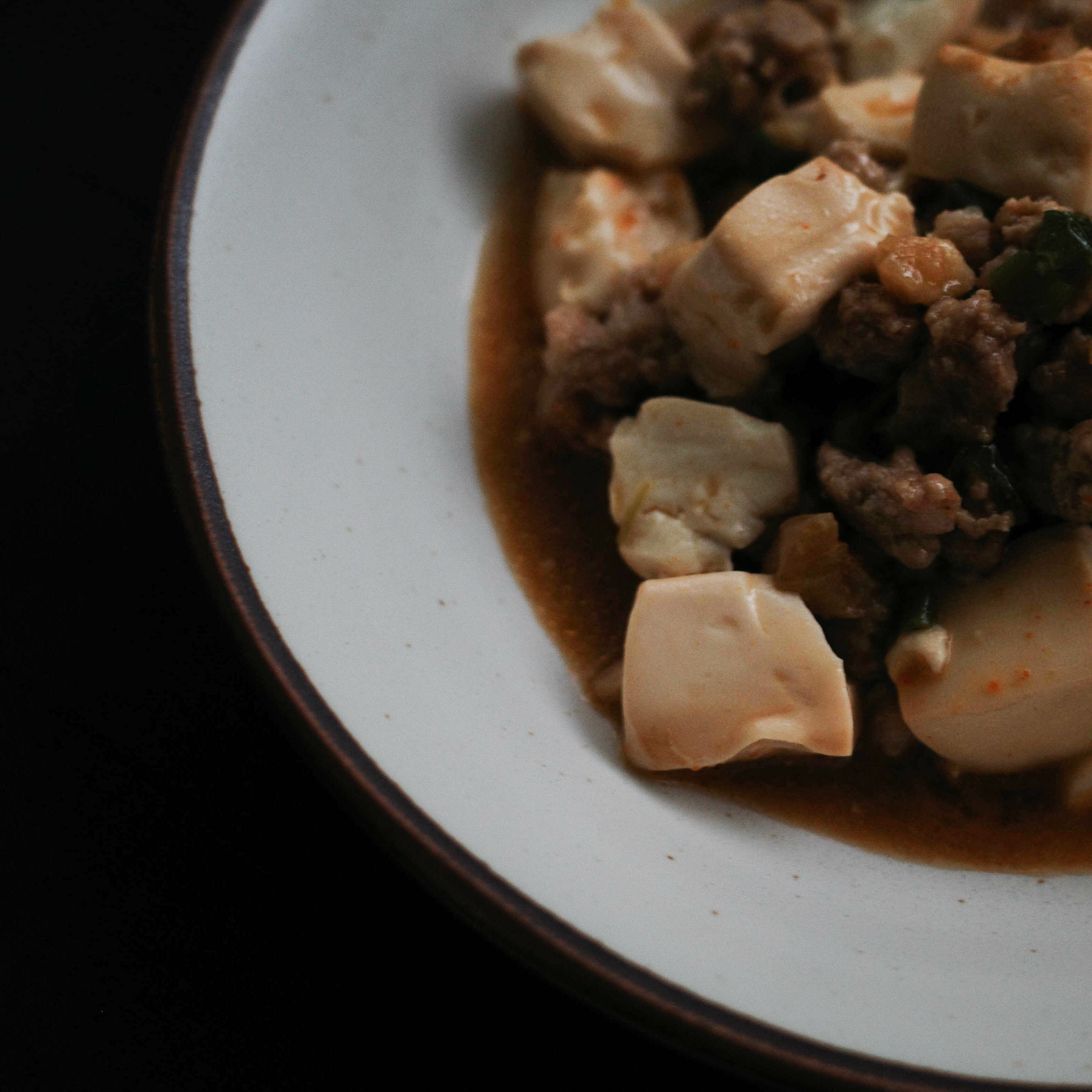4. 豬絞肉拌炒至熟,加入醬料A,與豆腐同煮2分鐘至入味。
