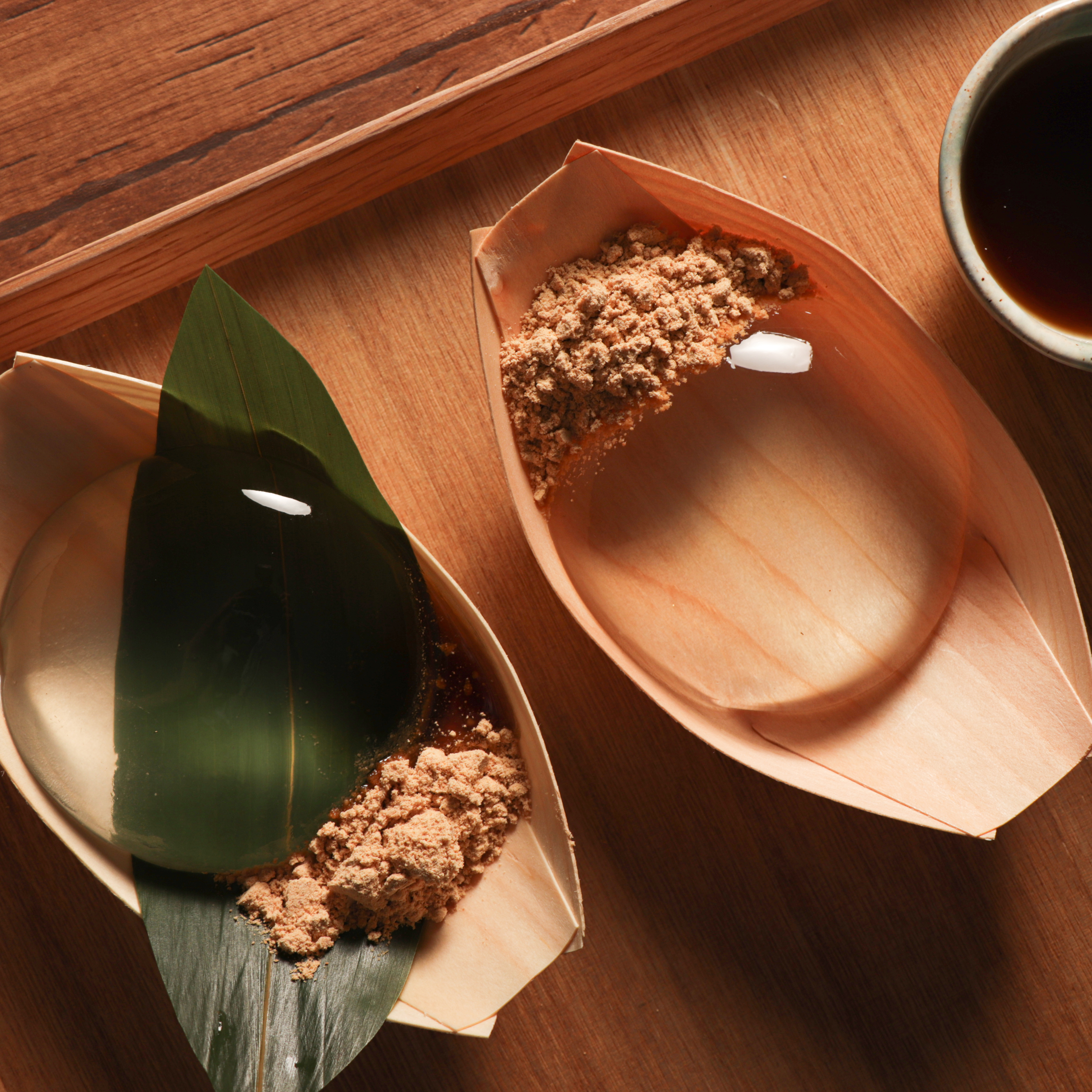 1. 在盆器中置入水信玄餅專用粉與上白糖,將其混合均勻。