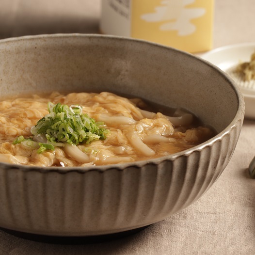 1.備鍋滾水,放入熟凍烏龍麵煮30秒,撈出裝碗。