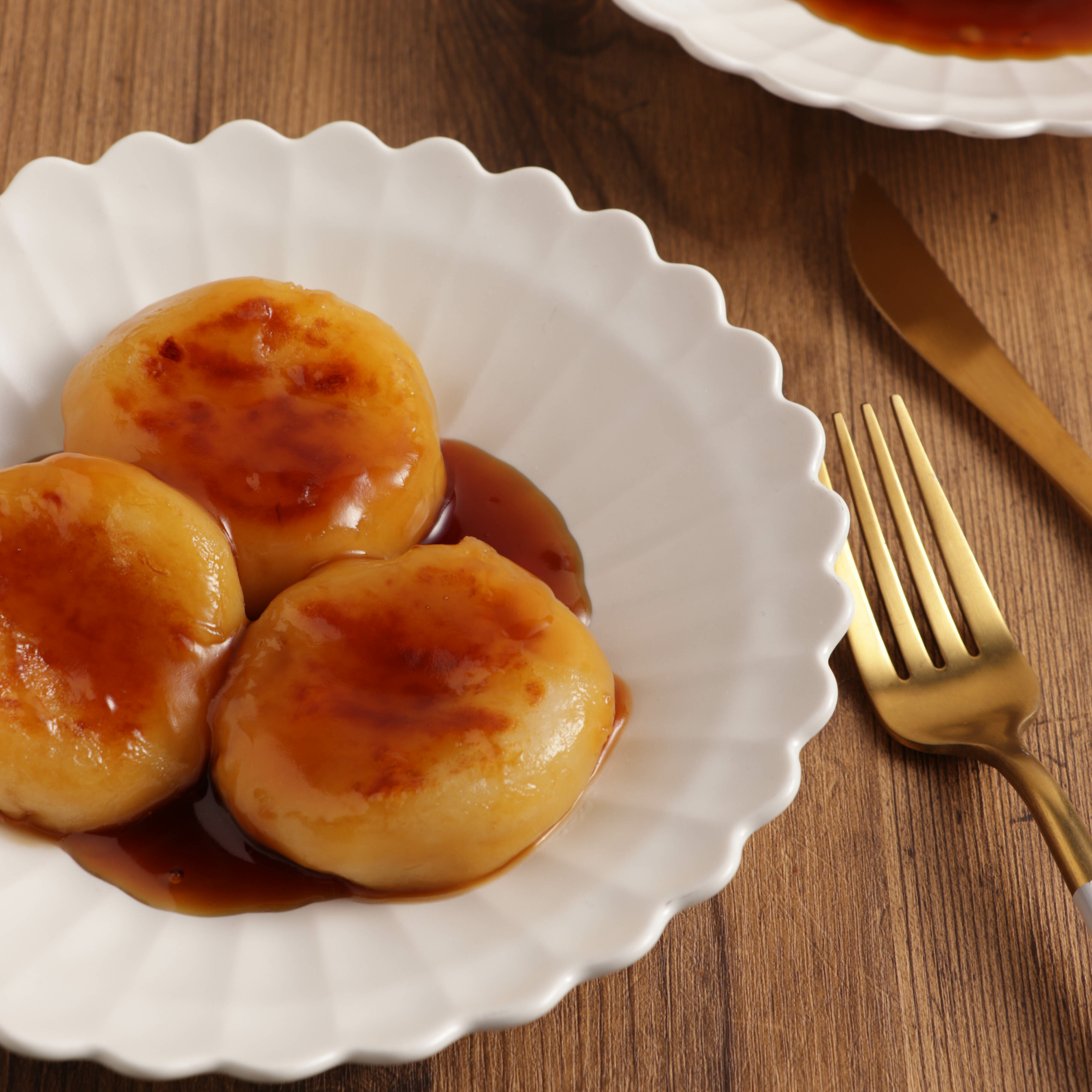 5.將煮好的醬汁澆淋在馬鈴薯餅上,即可盛盤。